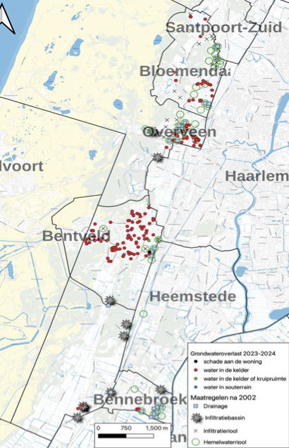 10. De gemeente Bloemendaal heeft bijgehouden waar de inwoners wonen met de grondwateroverlast sinds oktober 2023, hetgeen blijkt uit het kaartje opgenomen in het  rapport van KnowH2O: